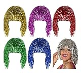 - Pelucas de lámina brillante: estas 6 pelucas están hechas de material de lámina metálica, brillante, liviana y reutilizable. Usa esta impresionante peluca brillante en una fiesta con tema disco y...